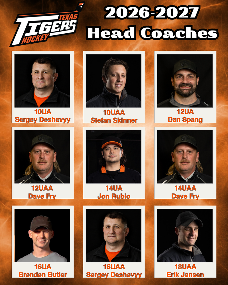 The Texas Tigers are excited to announce our coaching line up for the 2026-2027 season! We are looking forward to continuing our commitment to player development at every level as we prepare for our second season in the Texas Hockey League.